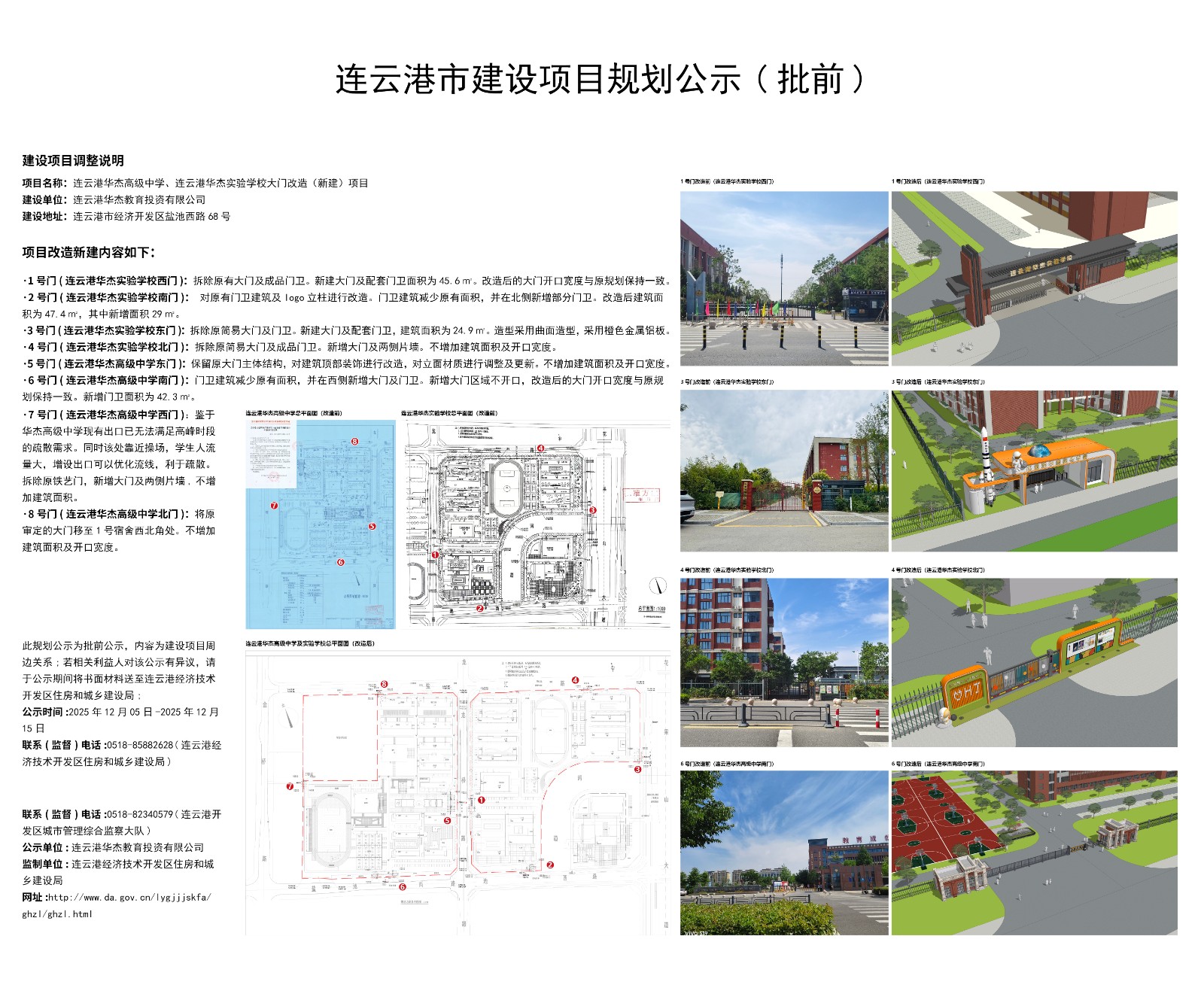 连云港华杰高级中学华杰实验中学大门改造项目(批前调整)公示